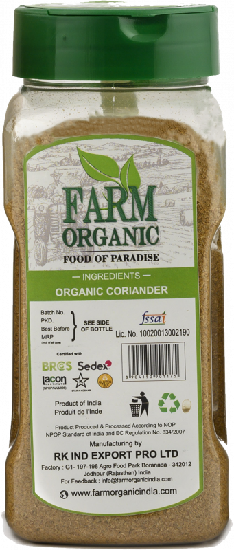 B FARM ORGANIC - Organic Coriander Powder - 210 GMS - PET JAR