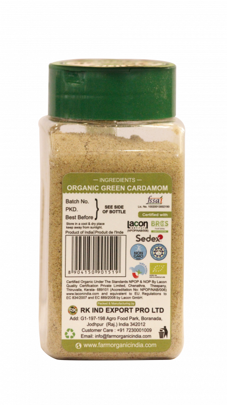 B FARM ORGANIC - Organic Green Cardamom Powder - 050 GMS - GLASS JAR