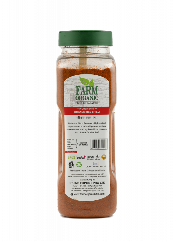 B FARM ORGANIC - Organic Red Chilli Powder - 500 GMS - PET JAR