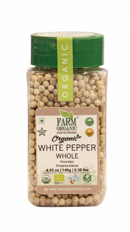 B FARM ORGANIC - Organic White Pepper Whole (Fj) - 140 GMS - PET JAR