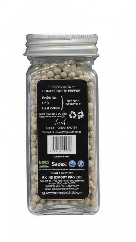 B FARM ORGANIC - Organic White Pepper Whole - 060 GMS - GLASS JAR