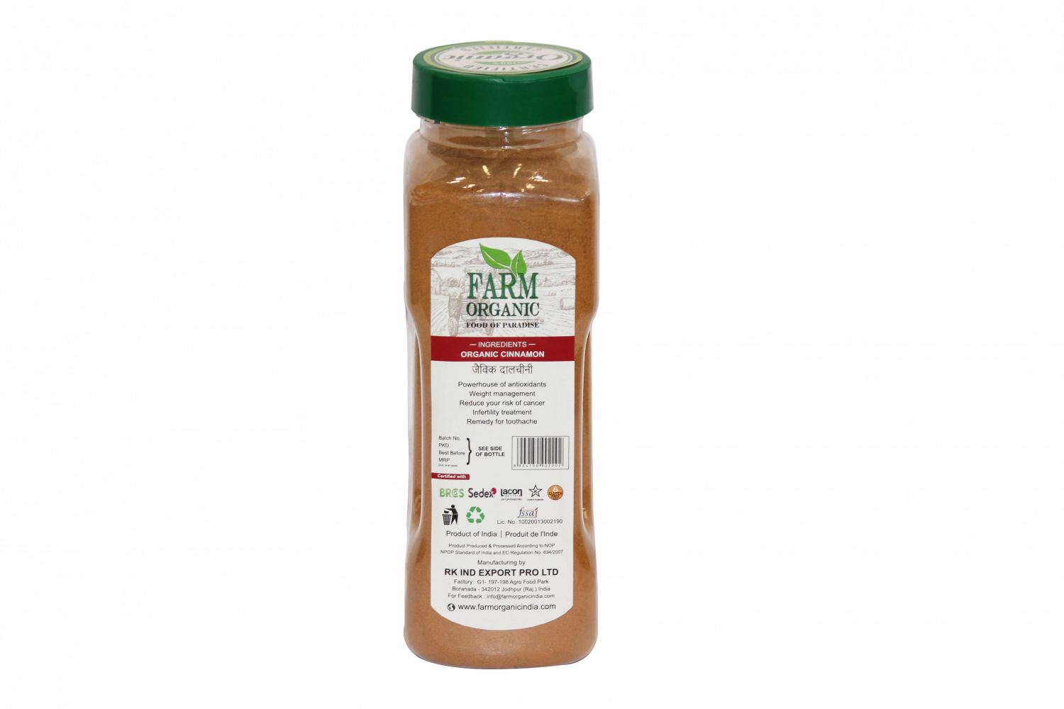 B FARM ORGANIC - Organic Cinnamon Powder - 500 GMS - PET JAR