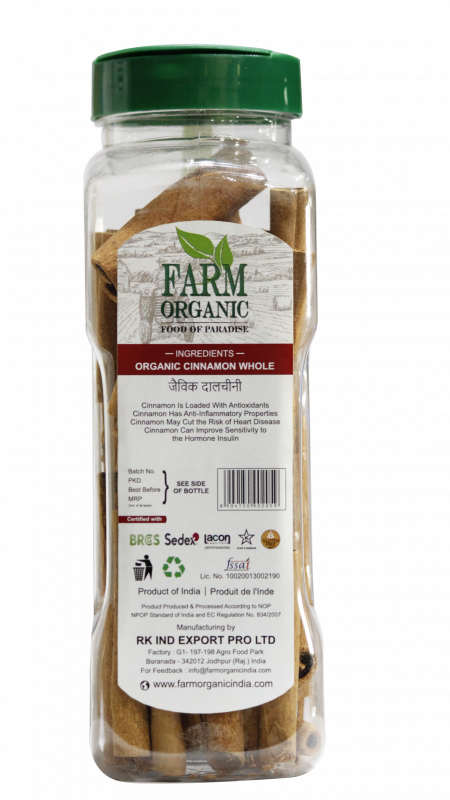 B FARM ORGANIC - Organic Cinnamon Quills - 200 GMS - PET JAR