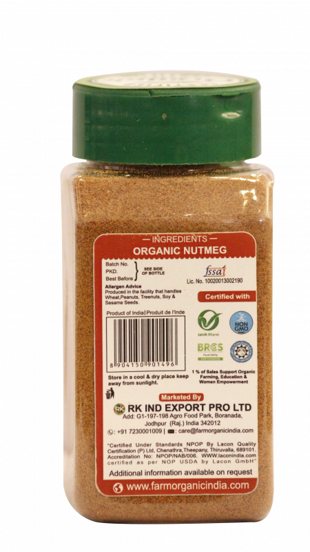 B FARM ORGANIC - Organic Nutmeg Powder - 110 GMS - PET JAR